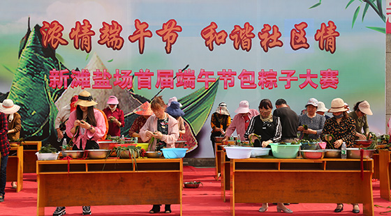 6月3日,新灘鹽場舉辦“濃情端午節(jié) 和諧社區(qū)情”首屆端午節(jié)包粽子大賽,喜迎端午節(jié)來臨?! 轫樌呐e行首屆端午節(jié)包粽子大賽,社區(qū)的工作人員和居民小組長們,提2019-06-06 -